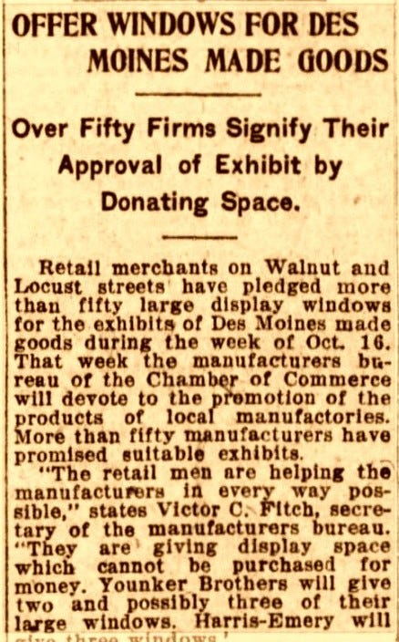 The department store educated, fed and entertained for more than 106 years. Society pages from The Des Moines Register detailed daily events at The Tea Room. News stories in 1916 described elaborate window displays lauding the area’s manufacturers. Another display in 1942 implored locals to buy war bonds, sold by the U.S. Treasury Department to finance the U.S. participation in World War II. It converted one display window on Walnut to a “Bond Shelter.” Volunteers sold bonds on the first floor.